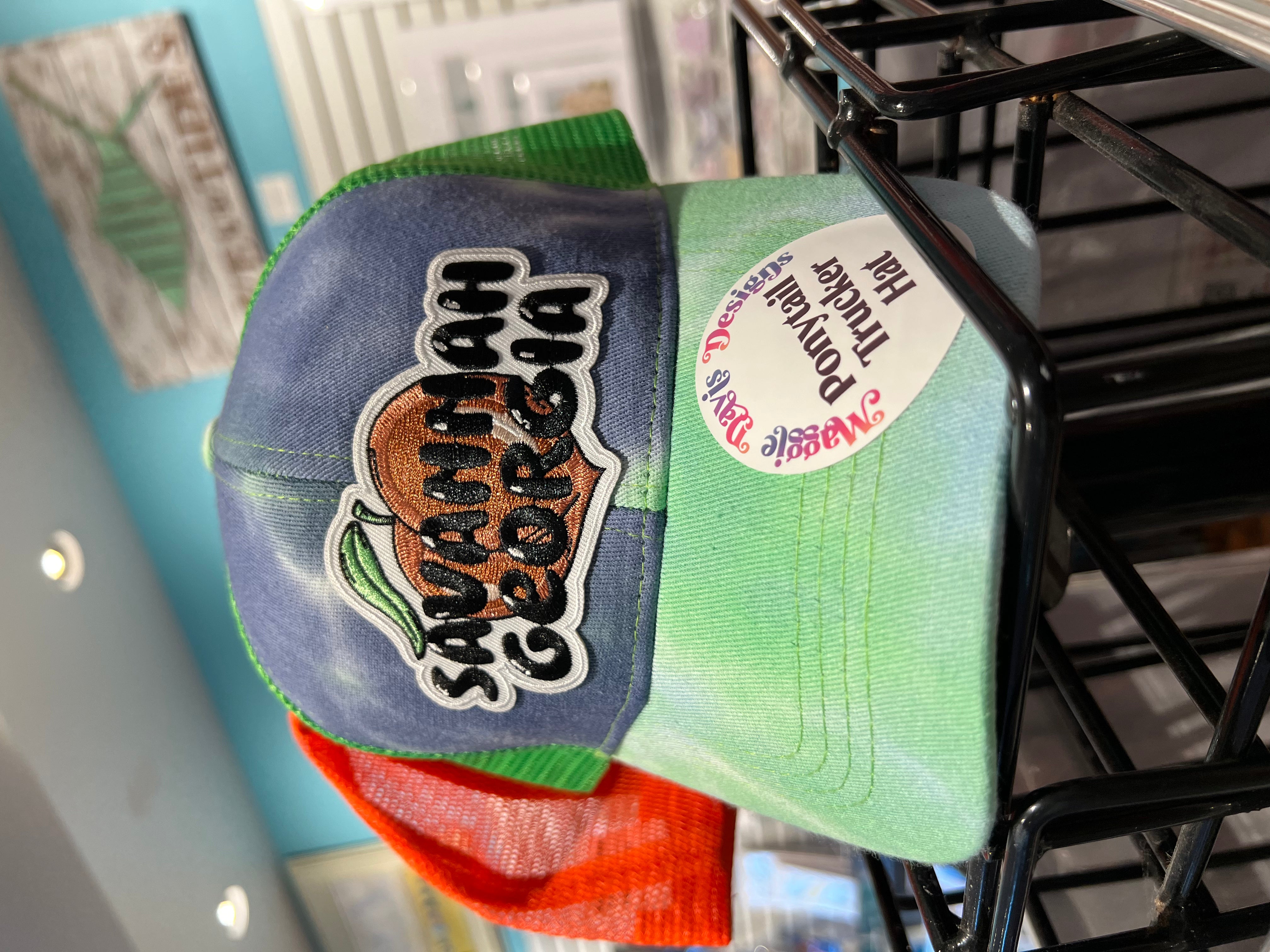 Maggie Davis: HatsRegular price $25.00- Ponytail Trucker Hat Savannah Patch Blue/Green