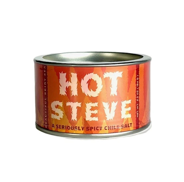 Hot Steve: Hot Steve is here to bring the perfect amount of zip to your popcorn, scrambled eggs, avocado toast, boozy brunches and backyard burgers. Salty and spicy with smoke and citrus. Fiery flavor abounds when Steve's around. 6.5oz Sea Salt, Cayenne, Chipotle, Ancho, Orange, Garlic, Smoked Paprika