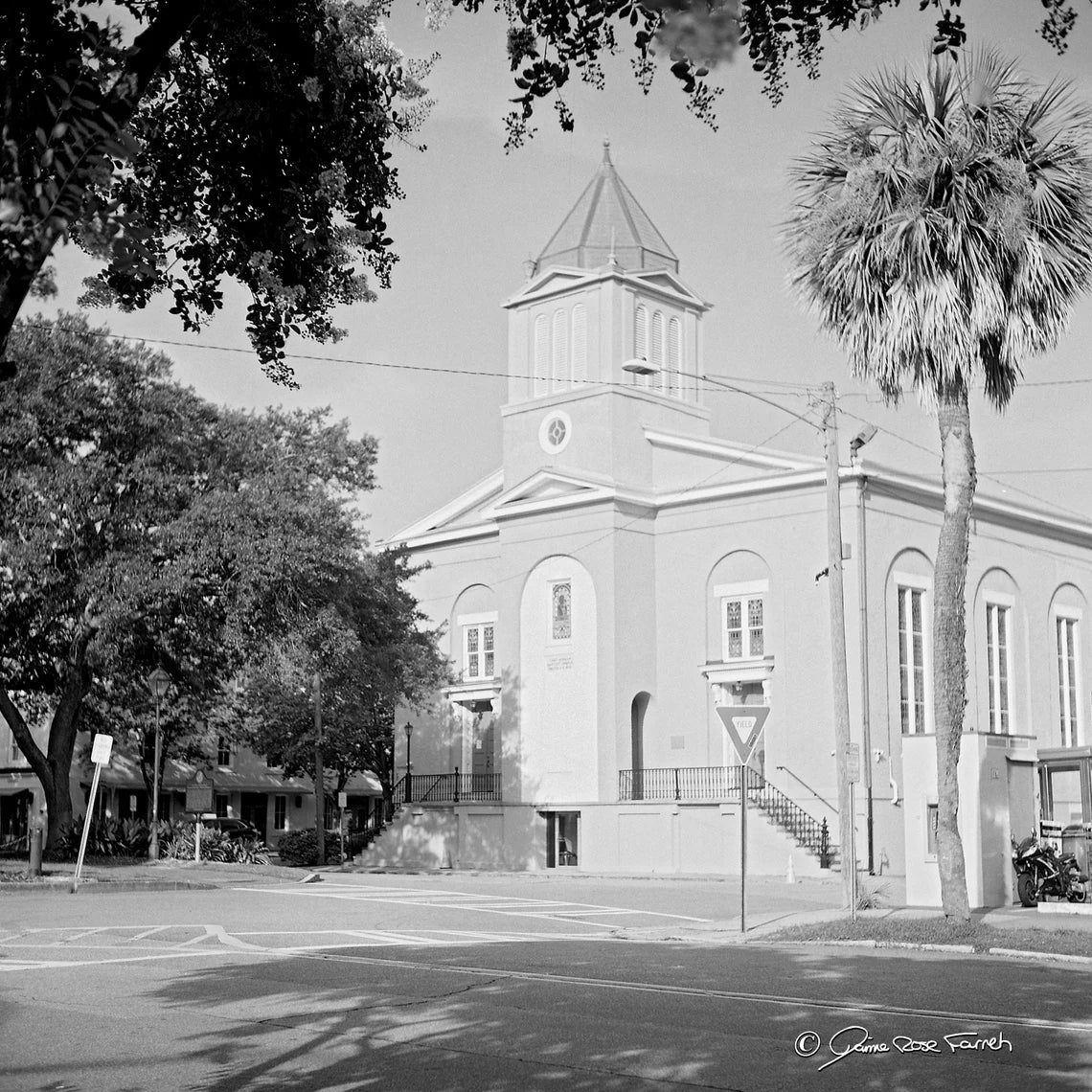 Based in Savannah, Jaime Rose captures stunning old school photography of the city, with a specialty in night photography. Her unique perspective of Savannah comes to life at night, as she captures the city's charm through creative angles and composition. The moon, streetlamps, and passing cars provide ambient lighting, casting a magical pink or amber glow on each square. With their deep shadows and extreme contrast, these images showcase the distinctive personalities of each location after dark. Originally from Massachusetts, Jaime Rose Farreh graduated from The New England School of Photography where she studied a range of traditional and digital techniques, focusing on urban landscapes and after-dark photography.