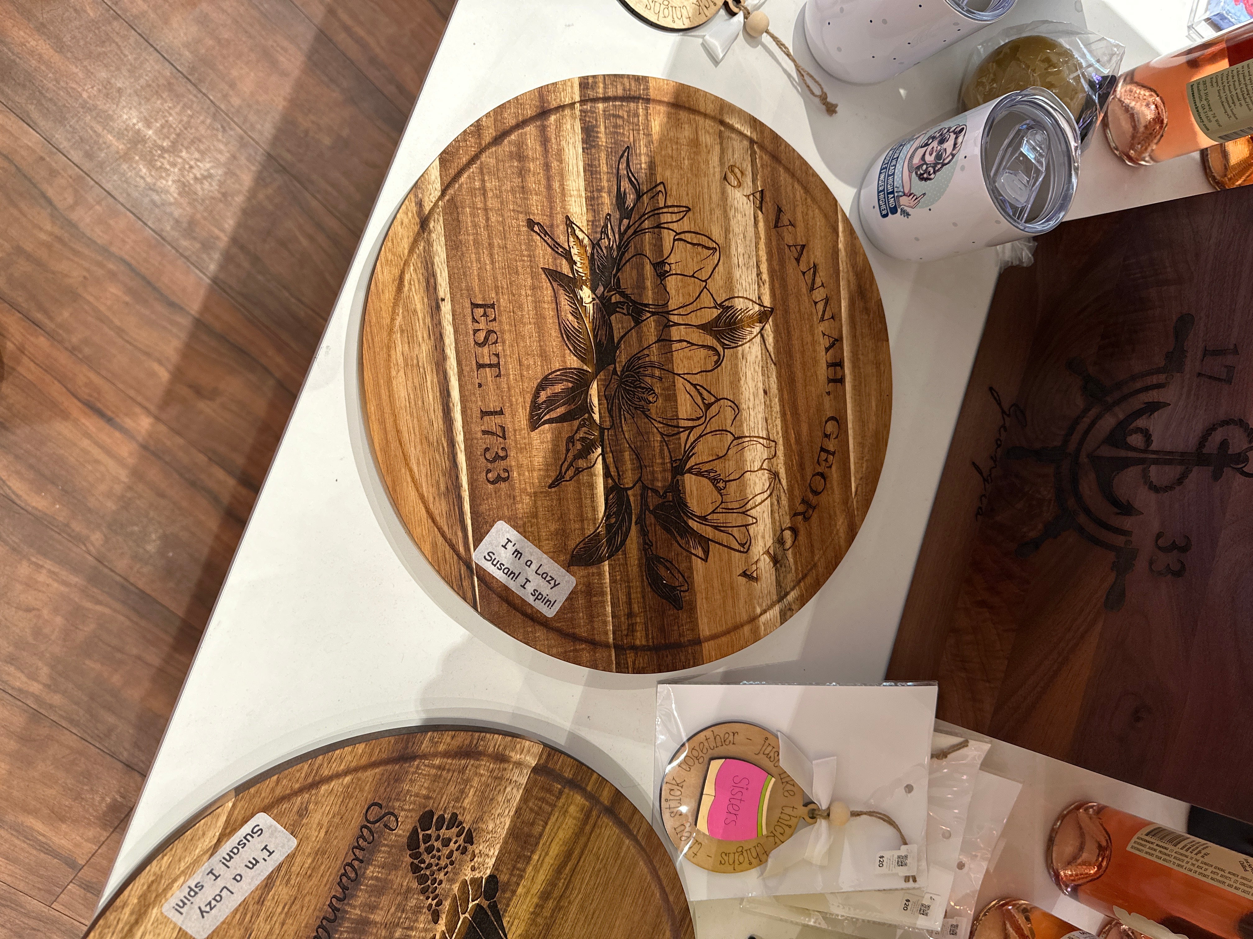 Beautifully crafted wooden boards that will elevate any kitchen. These boards are delicately detailed with precision with various designs and have crisp, clean lines. They are the perfect piece for any charcuterie board, and are eye-catching decorations.