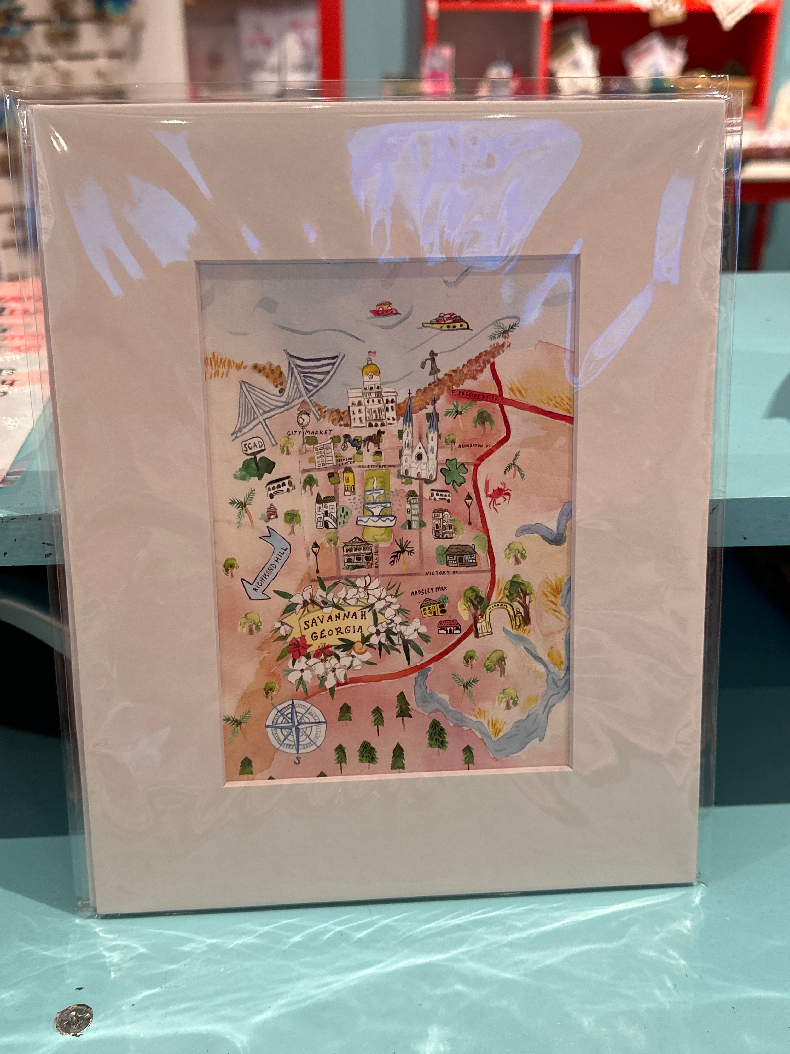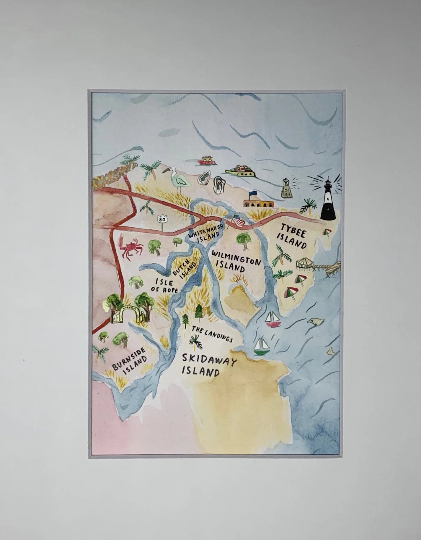 Our watercolor maps highlight special spots of Savannah.